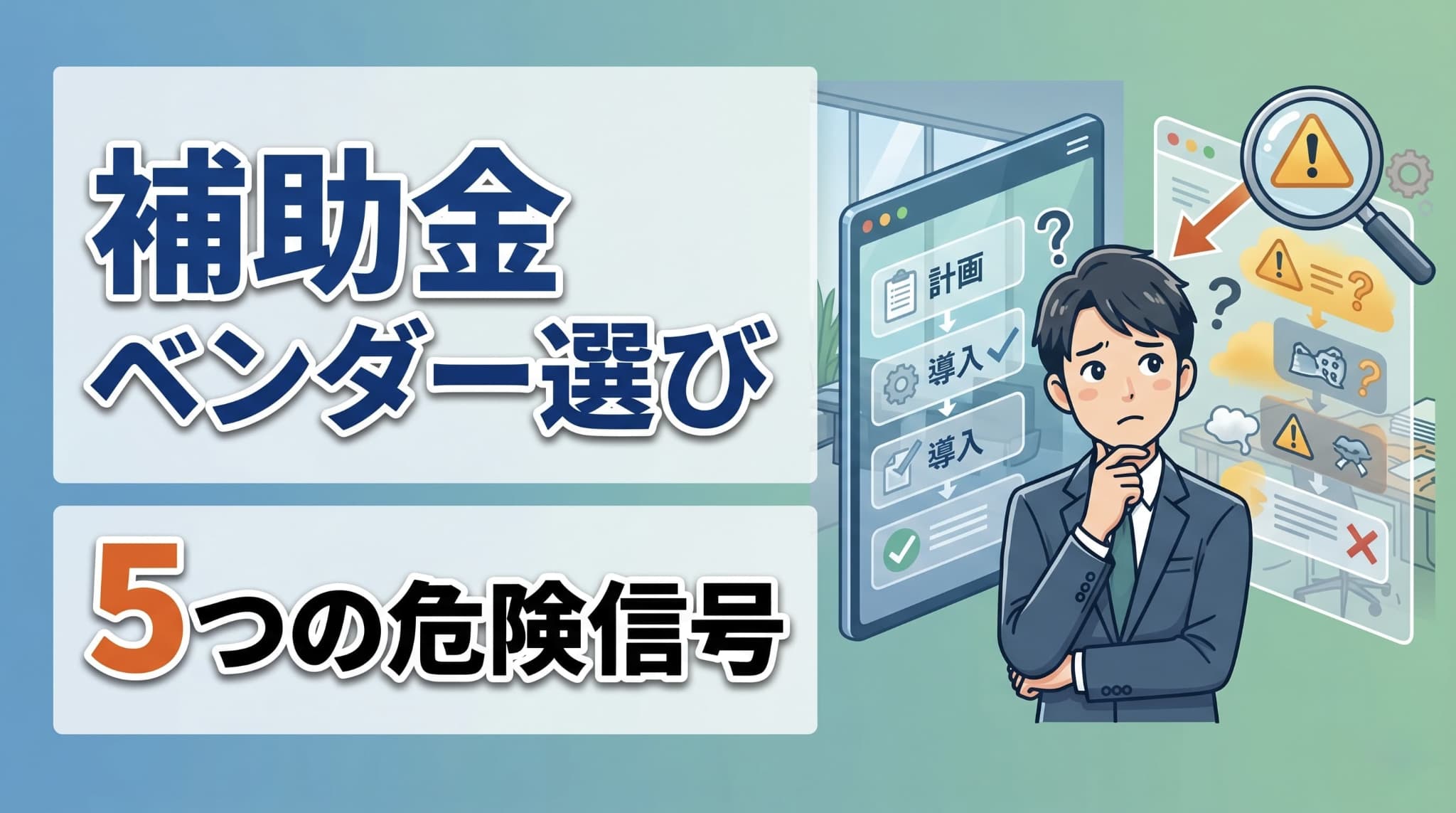 IT導入補助金(デジタル化・AI導入補助金2026)の支援事業者選びで失敗しないための実務ガイド。会計検査院が指摘した1億円超のキックバック不正、登録取消処分を受けた事業者の共通点、料金相場と契約前に確認すべき5つのチェックリストを一次情報ベースで解説。
